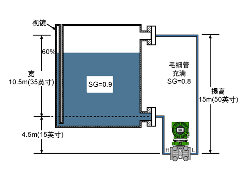 2. 需要注意的是,量程計(jì)算基于過程流體的過程高度X比重,而不需與物理高度相符。