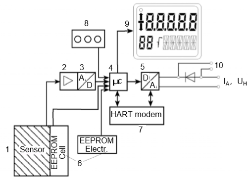 西門子壓力變送器產(chǎn)生的信號被信號放大器放大后,經(jīng)模–數(shù)轉(zhuǎn)換器轉(zhuǎn)換成數(shù)字信號。在微處理器中,經(jīng)線性和溫度校正后,再經(jīng)數(shù)–模轉(zhuǎn)換器(轉(zhuǎn)換成直流4-20mA輸出信號。一個二極管電路提供反向極性保護(hù),外部指示(電壓降<0.5v)也可以連接到這個電路上。涉及測量元件的電子數(shù)據(jù)和變送器功能參數(shù)數(shù)據(jù)被存貯在兩個EEPROM 中。 你可以通過3個輸入調(diào)整鍵直接在測量點對西門子壓力變送器進(jìn)行參數(shù)調(diào)整,可以在數(shù)字顯示中讀取測量結(jié)果、故障信息和工作方式。也可以通過HART調(diào)制解調(diào)器,按照HART協(xié)議進(jìn)行參數(shù)調(diào)整。