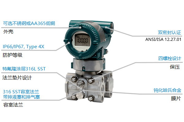 堅(jiān)固耐用的構(gòu)造可以幫助您的工廠(chǎng)減少故障。四螺栓保壓設(shè)計(jì),DPharp數(shù)字傳感器,特氟龍涂層316L不銹鋼法蘭墊圈,ANSI / ISA 12.27.01認(rèn)證雙重密封 - 所有的設(shè)計(jì)特點(diǎn)都為延長(zhǎng)變送器的使用壽命。
