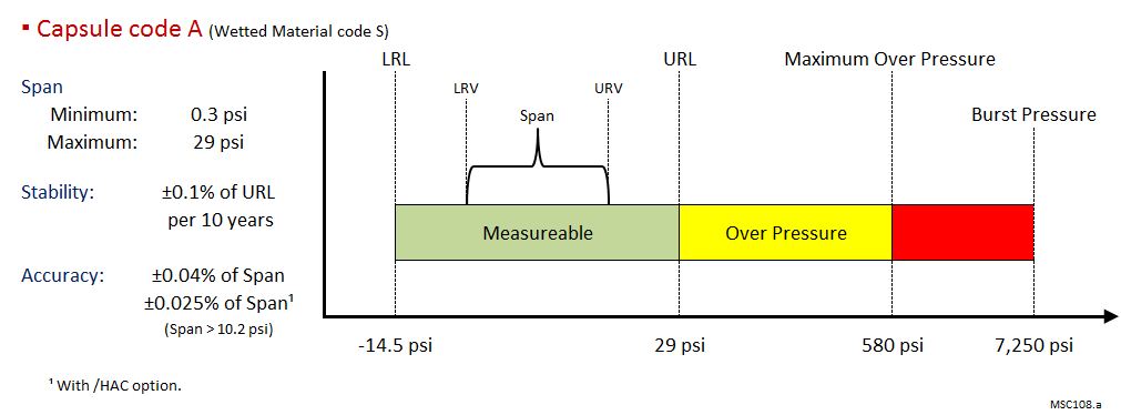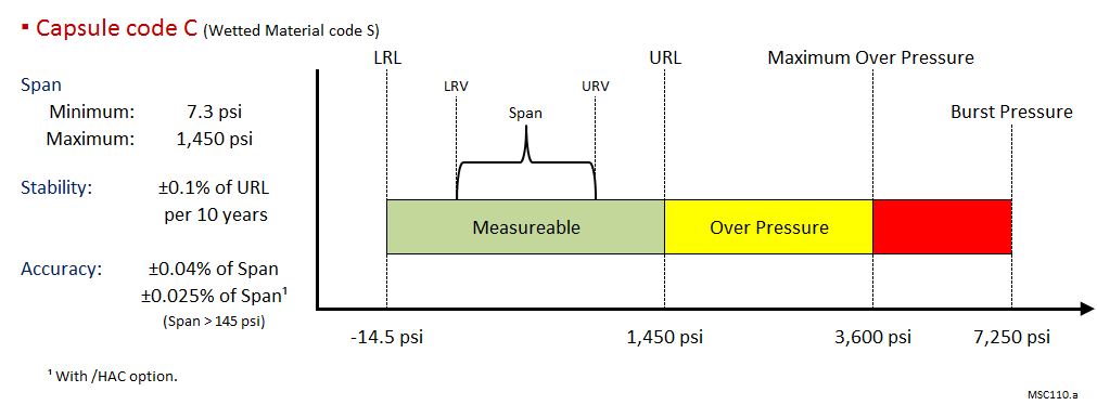 | A,B或C膜盒 | 7,250 psi(50 MPa) |