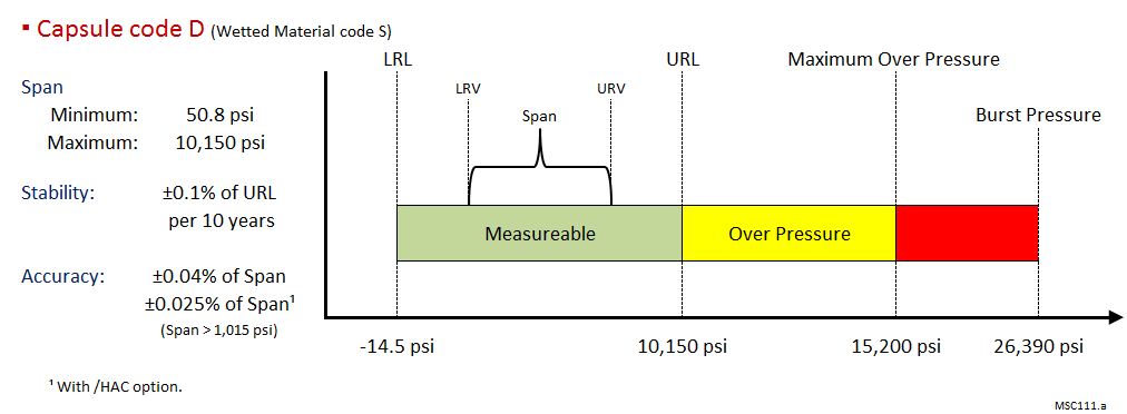 | D膜盒 | 26,390 psi(182 MPa) |